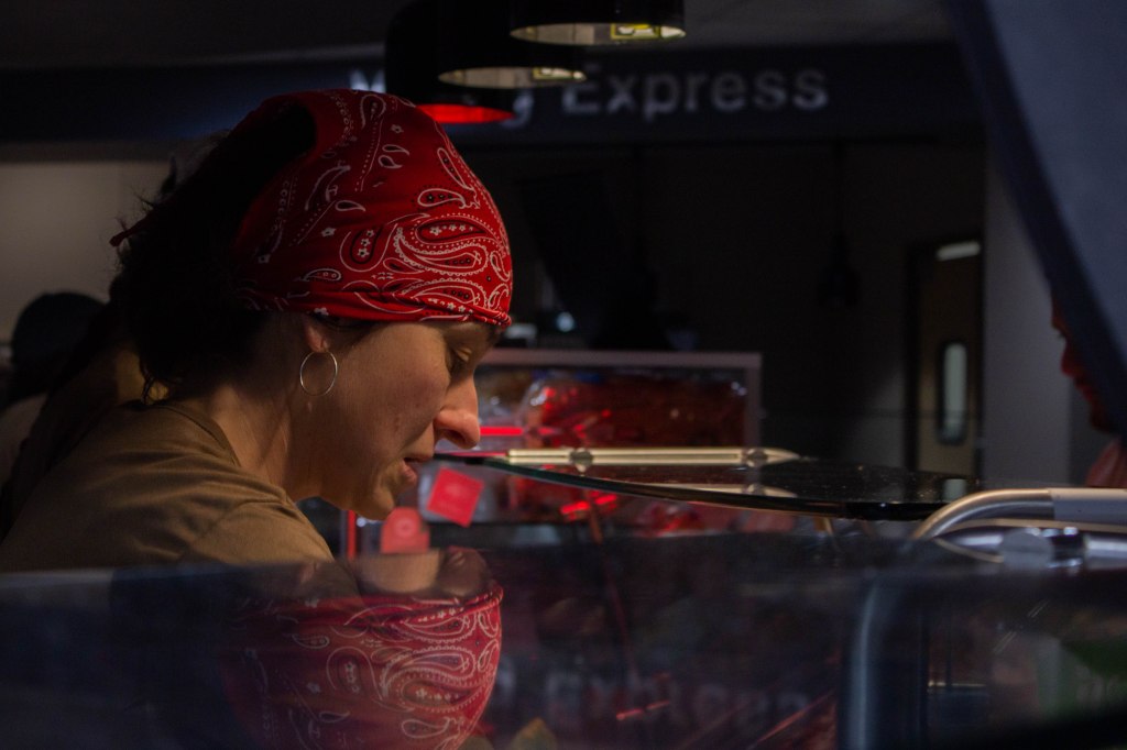 Claire Schmidt, Tamika Drake, and Jennifer Livengood spent an evening serving at the Caf. The three professors and a couple of students worked for two hours to raise money for the Research Symposium and Sigma Tau Delta.