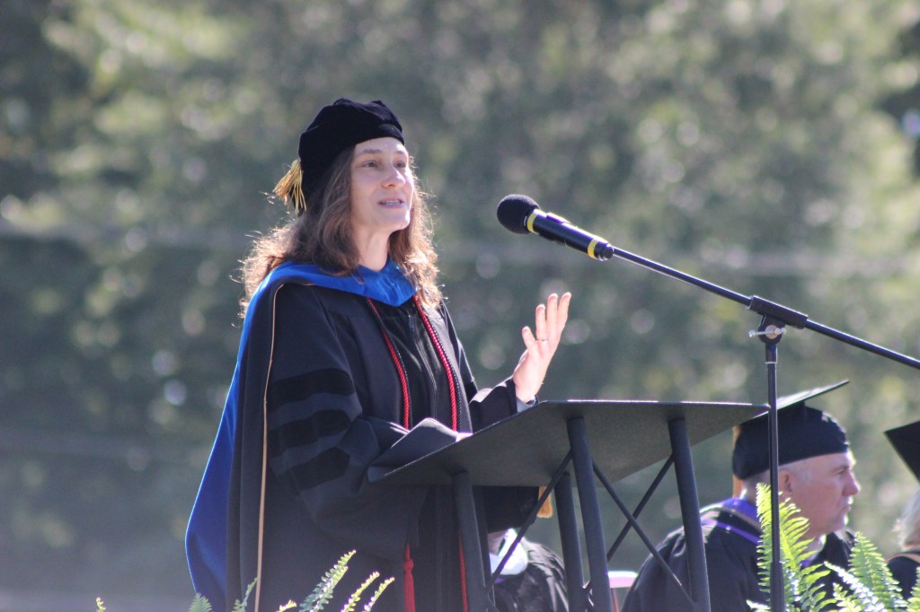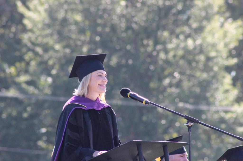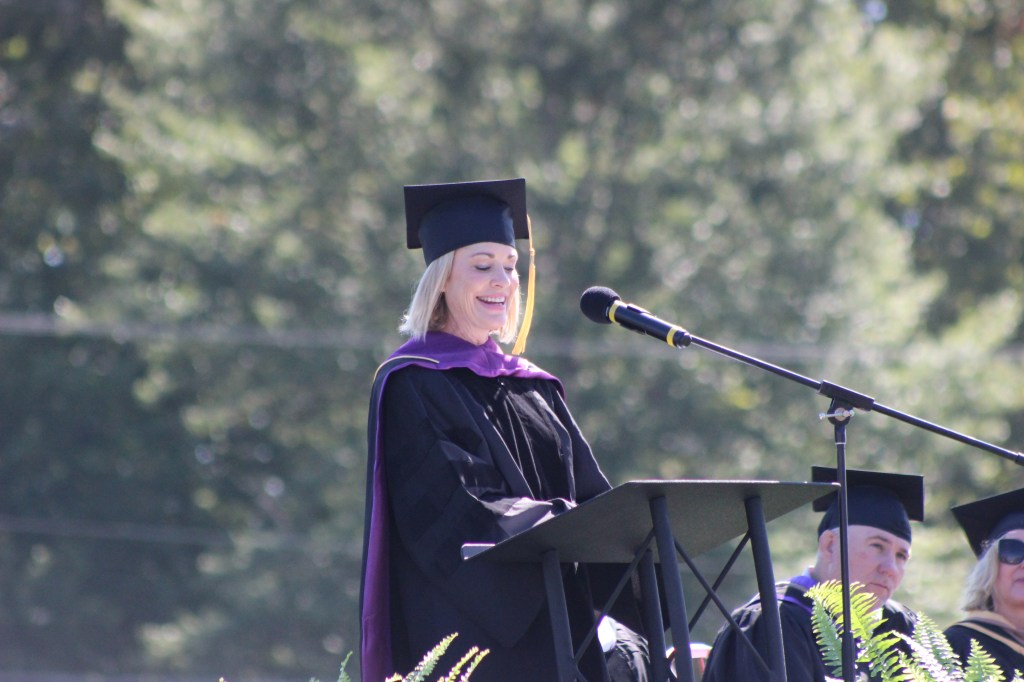 Vice President for Academic Affairs, Elizabeth Bellamy, gave the remarks for convocation. Director of Viking Sports Network, Ken Kujawa, and Student Government Association President, Eva Agcaoili, introduced the coaches and student organizations at Valley.