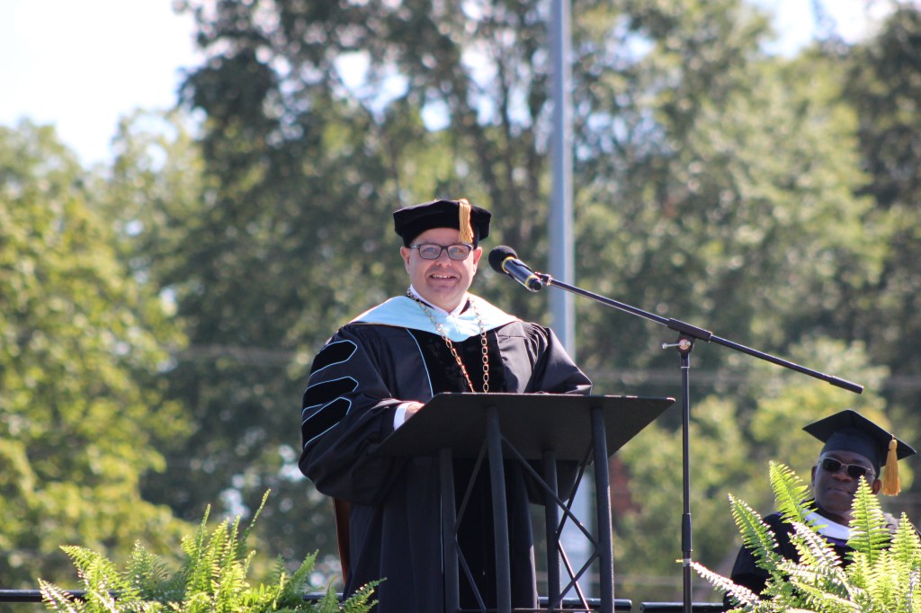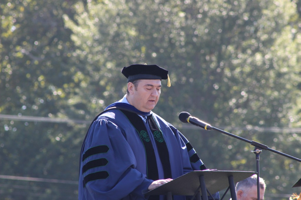 After the convocation, a member of the board of trustees and 1986 graduate, Oscar Tshibanda, gave the opening remarks for the president’s installation. Agcaoili; Valley Registrar, Marsha Lashley; Valley Professor, Claire Schmidt; Alumni Association President and 2004 graduate, Katie Shannon; and Mayor Vince Lutterbie gave speeches welcoming Parisi to their community.