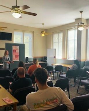 Library Director Samantha Perkins presented on the maternal mental health crisis. Some of the focuses of the presentation were systematic racism in healthcare, socioeconomic status and the lack of access to quality healthcare.