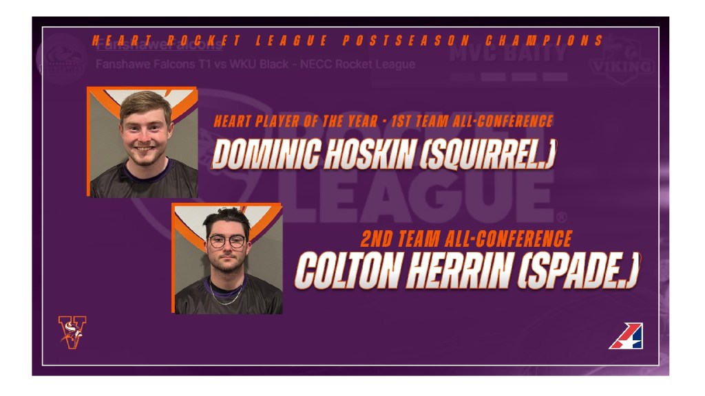 The Vikings had some star players that led them to this championship. One being Dominic Hoskin (Squirrel). Dominic was named Heart Player of the Year and made the 1st team all conference for Rocket League. Another star is Colton Herrin (Spade). Colton was named 2nd team all conference.